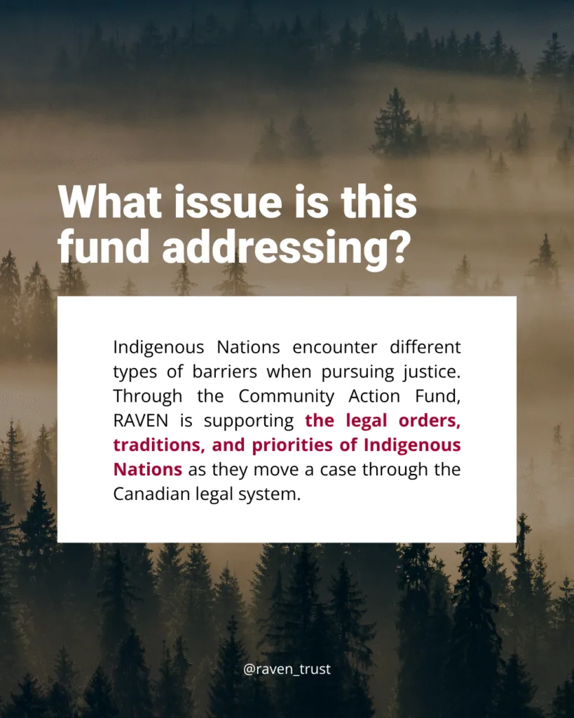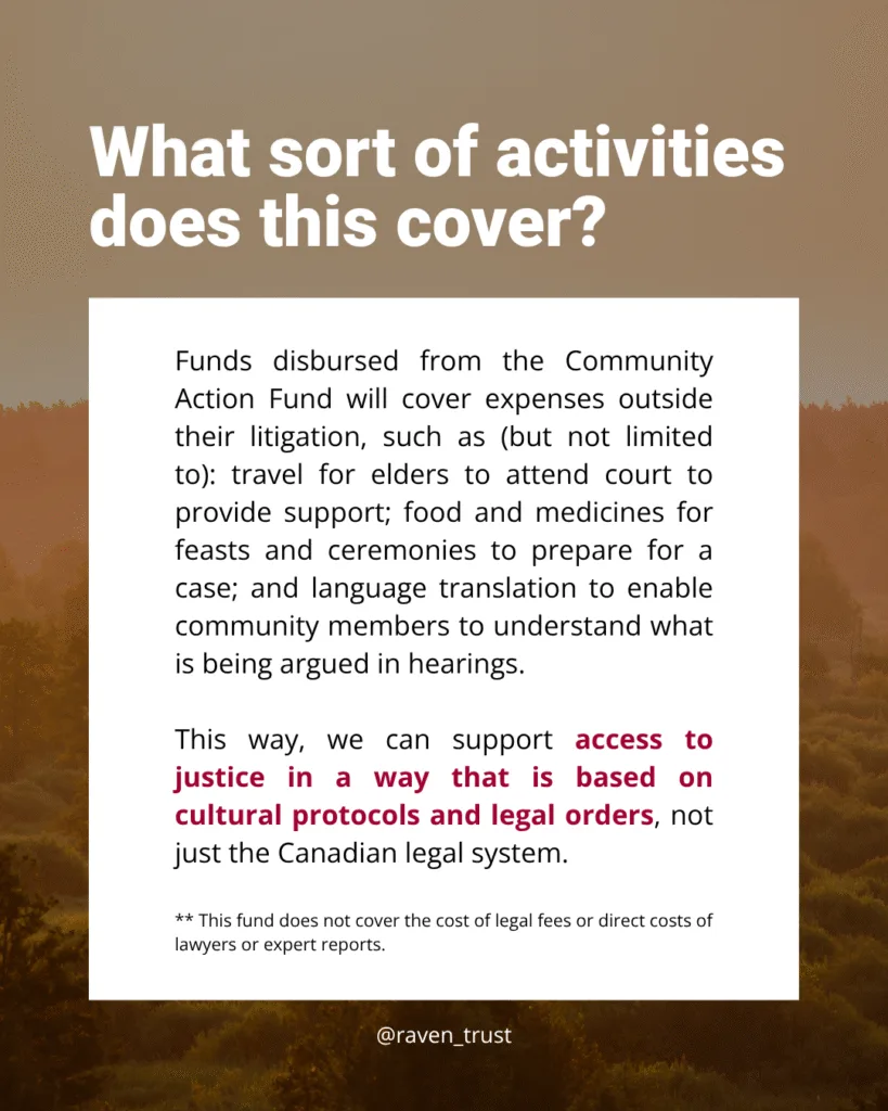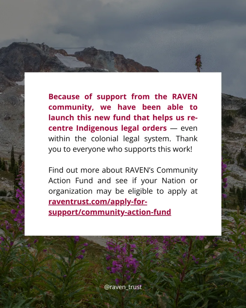 Because of support from the RAVEN community, we have been able to launch this new fund that helps us re-centre Indigenous legal orders, even within the colonial legal system. Thank you to everyone who supports this work!