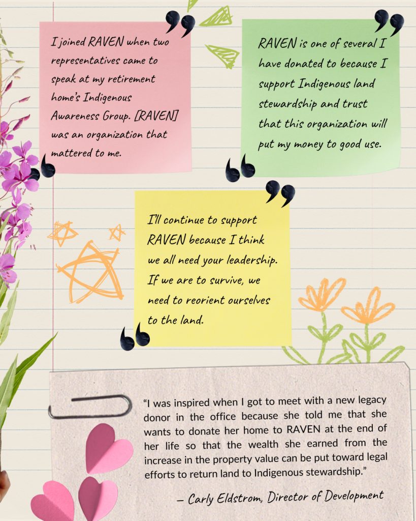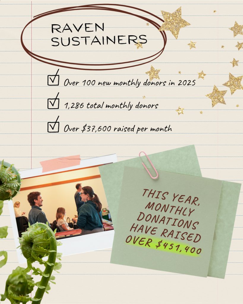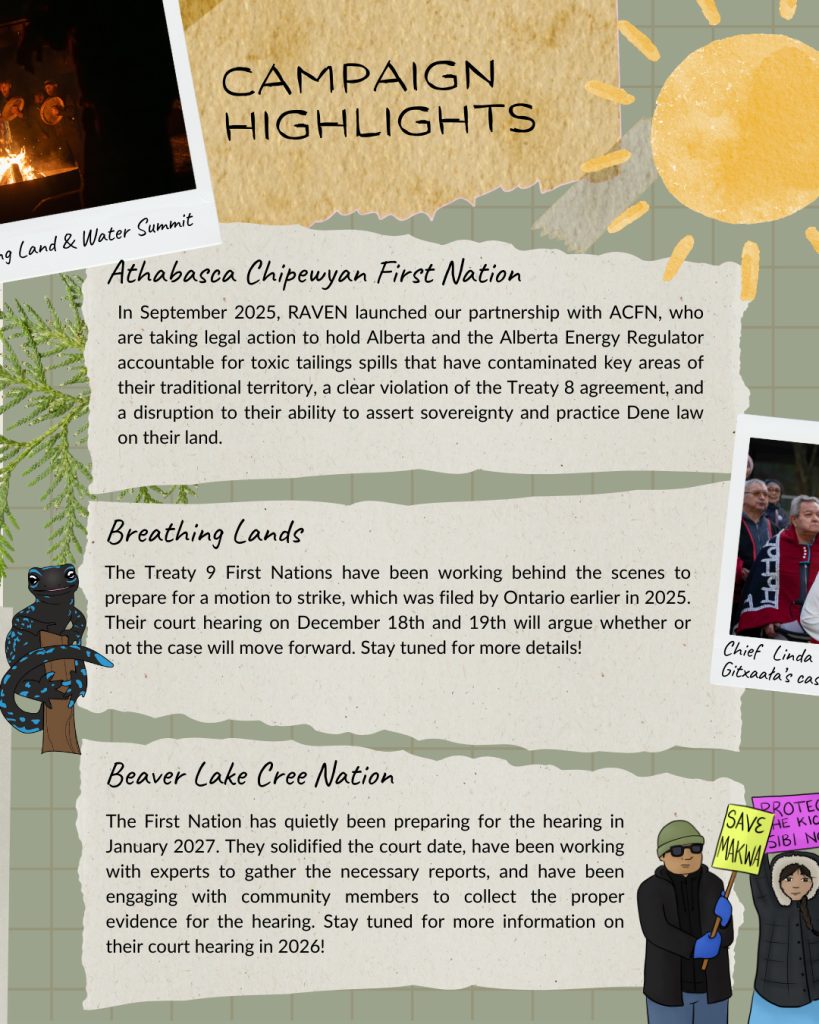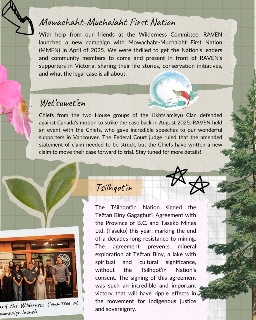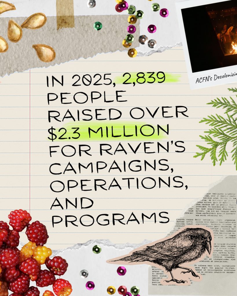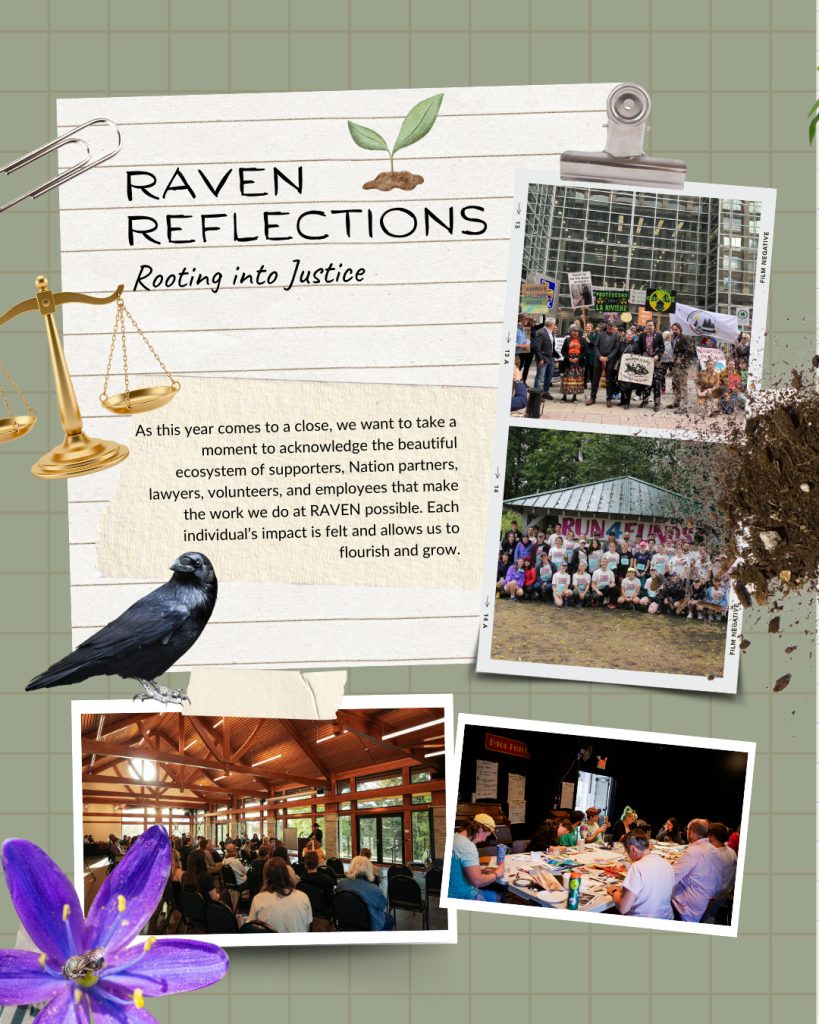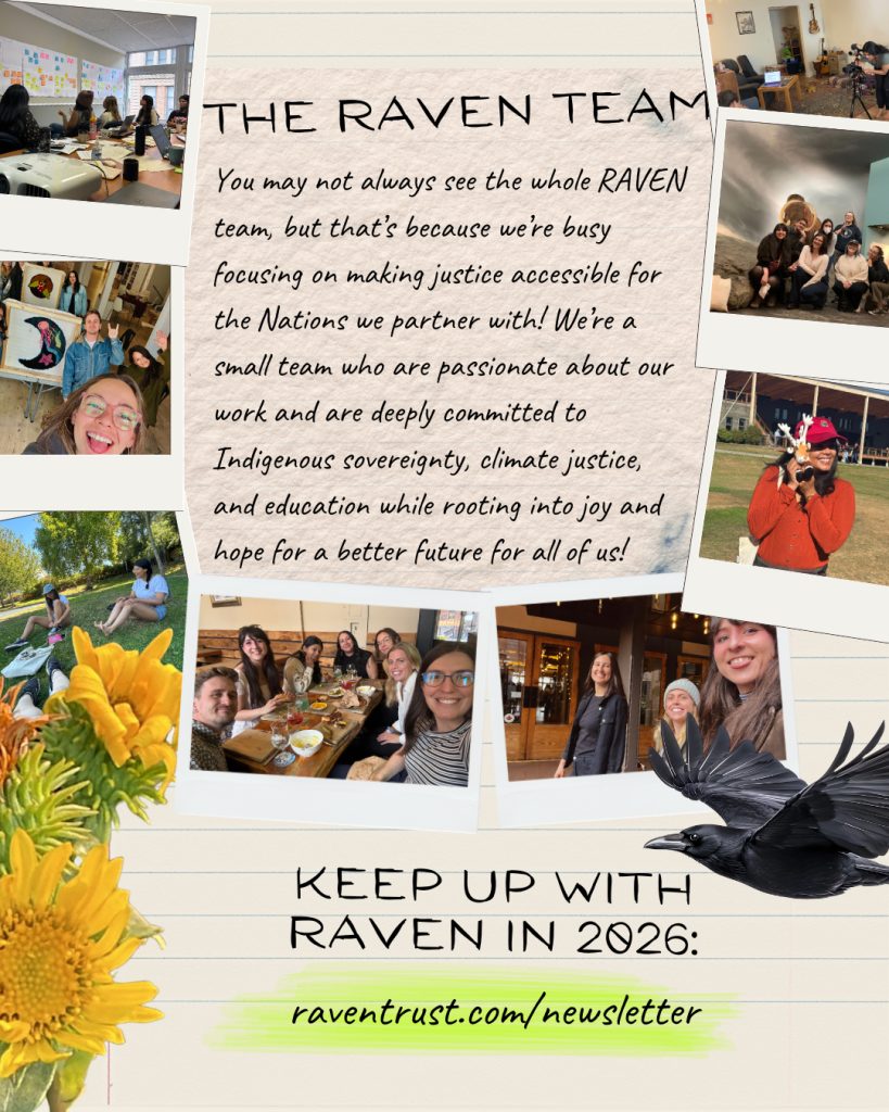 Another year has come and gone. As we near the end of 2025, we are looking back at all we have done together, collecting the memories, reflecting on the incredible accomplishments, going over the lessons learned, and preparing for another year of supporting Indigenous-led justice and environmental rights. As we look ahead to the work to come, we are rooting into this past year, grateful for the beautiful ecosystem of supporters, Nation partners, lawyers, volunteers, and employees that make the work we do at RAVEN possible. Each individual’s impact is felt and allows us to flourish and grow.