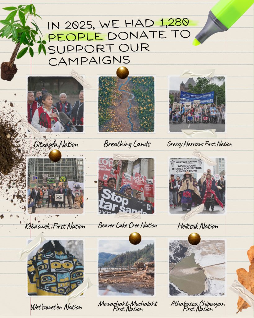 We are feeling such deep gratitude for every person who has supported our work this year, and by proxy, supported Indigenous sovereignty. As we witness governments and people in positions of power continue to violate Indigenous rights and harm the environment, we choose to look to each other for support, inspiration, and hope. Together, we are building a movement that is creating transformative change. Thank you for being part of the movement and for walking alongside us this year. We can’t wait to see what we do together in 2026.