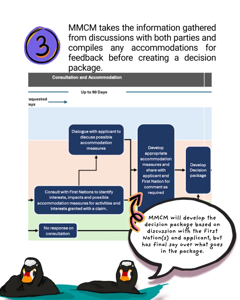 MMCM will develop the decision package based on discussion with the First Nation(s) and applicant, but has final say over what goes in the package.